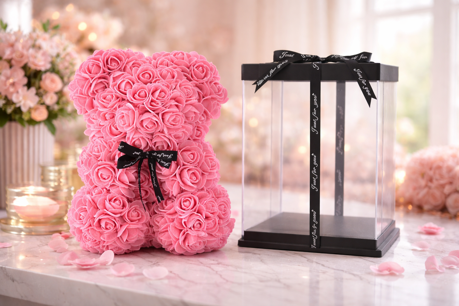 Our rose teddy bears are designed to last, symbolizing love that never fades—unlike traditional flowers.